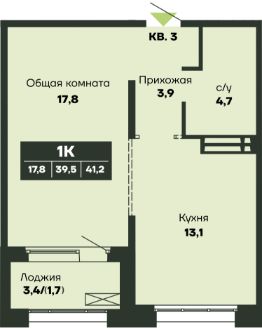 Общая площадь41,2 м²
