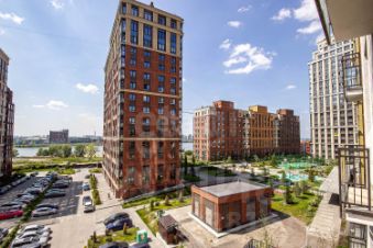 Новый жилой комплекс у реки. Классическая кирпичная кладка.