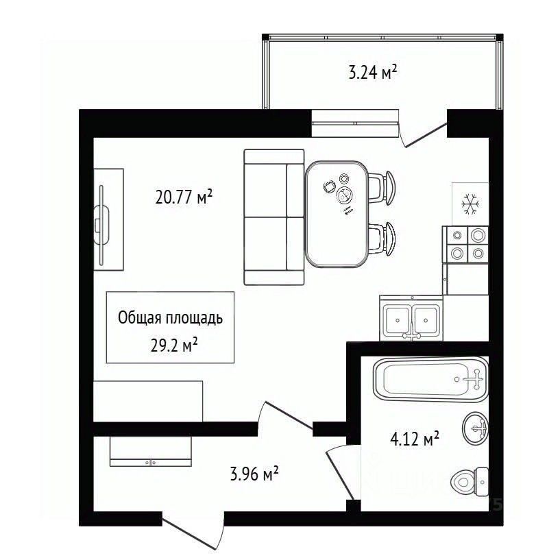 Продажа большой студии 29,2 м².