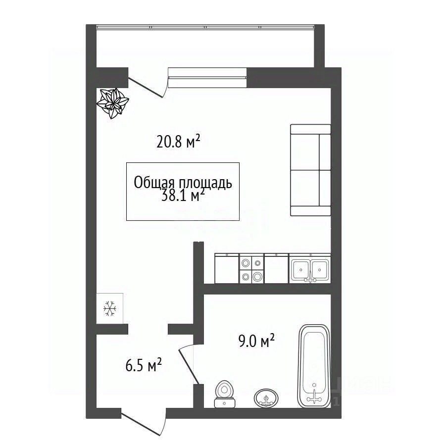 38,1 м²