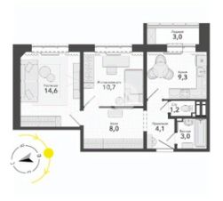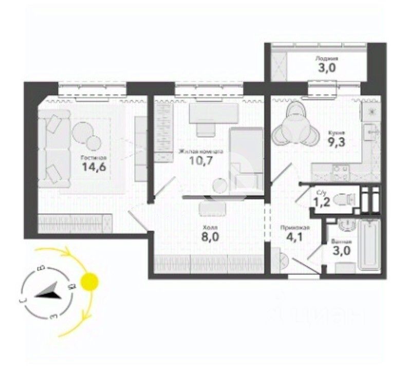 Общая площадь указана с учетом лоджии.