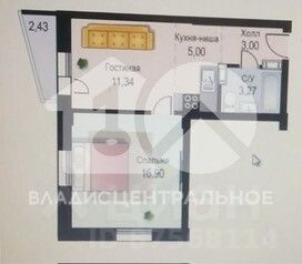 Квартира расположена на 9 этаже 19-этажного кирпично-монолитного дома, построенного в 2017 году. Высота потолков — 2,7 метра, что создаёт ощущение простора. Общая площадь квартиры составляет 40,2 кв. м, жилая — 28,24 кв. м, кухня — 5 кв. м. Комнаты : 16,9 и 11,34 кв. м. Есть балкон. Окна выходят во двор.