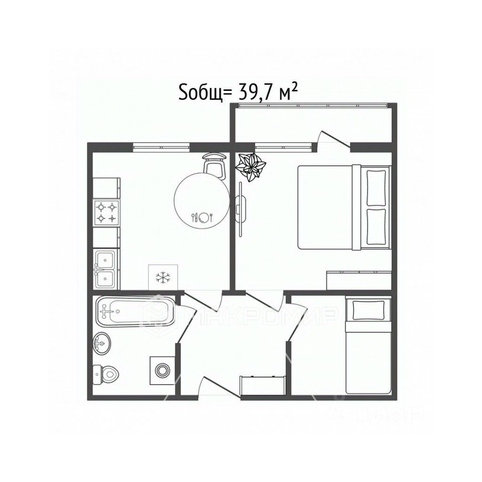 Арт. 133397336 1-к. квартира (фактически 2 комнаты), 39.7 м², свежий ремонт, гардеробная, кухня 16 м²