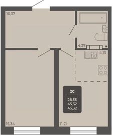 2-комн. апартаменты, 44,8 м²