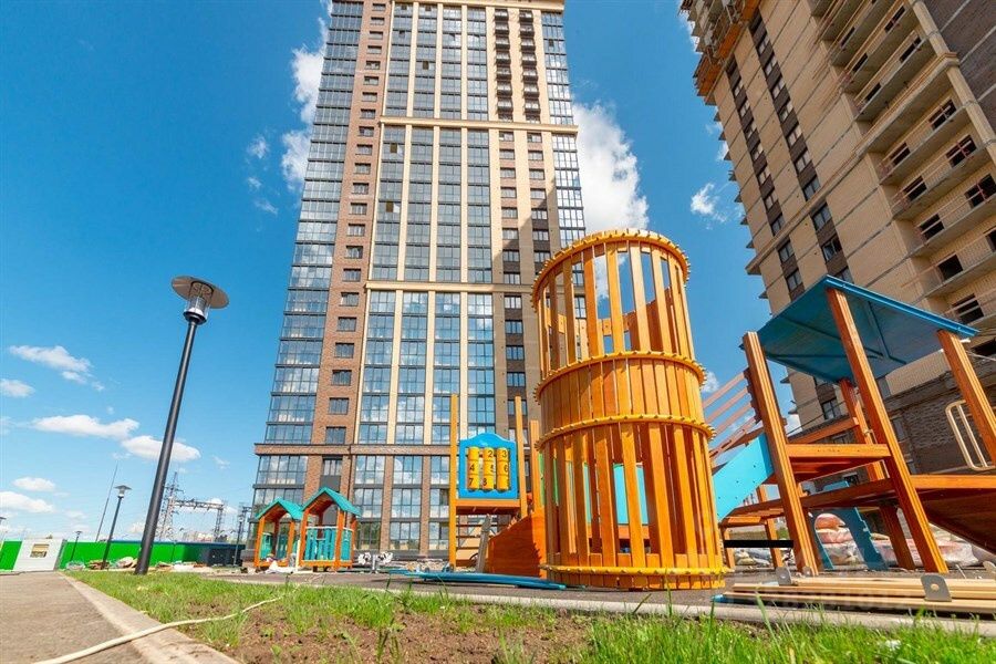 Двор комплекса - это заливистый смех детей, оживленные разговоры взрослых, тихое щебетание птиц и шуршание зеленых веток. Кто-то выходит с покупками из магазина, пока другие сидят на завтраке в кофейне. В это время в роще родители гуляют с колясками и вокруг них по деревьям прыгают белочки. На футбольном поле занимаются подростки, а ребята помладше бегают от качелей к горкам по безопасному покрытию игровой площадки.