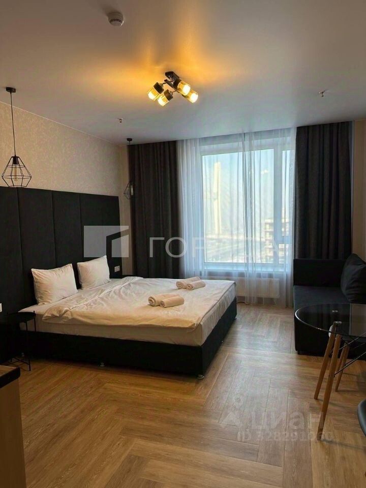Вид: 11 этаж из 16 - идеальная высота, чтобы в окна не заглядывали соседи, а естественного света было в достатке. Окна выходят на новый "Четвёртый мост".