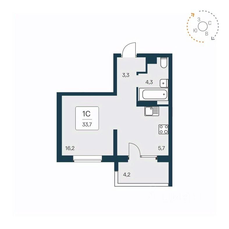 Общая площадь33,9 м²