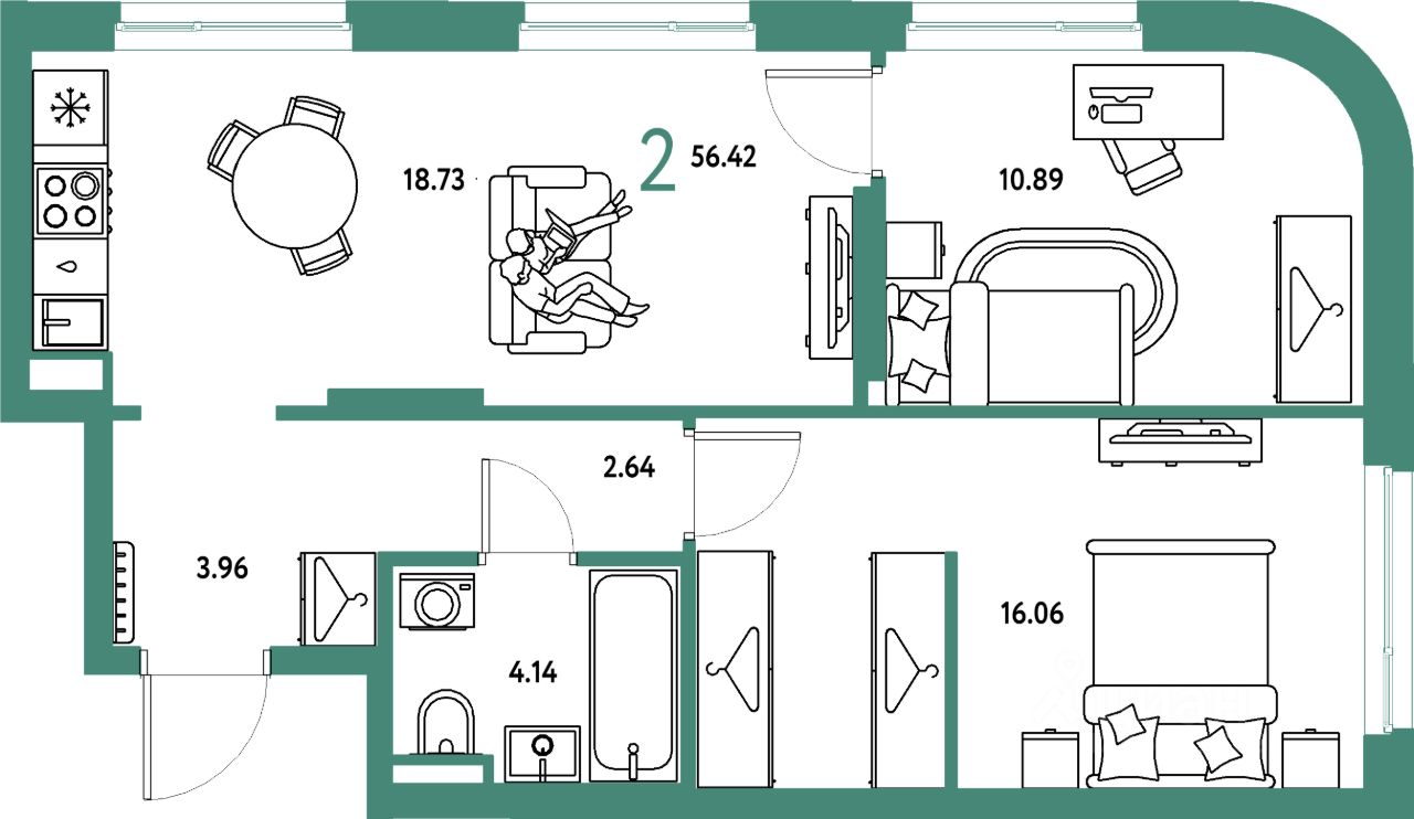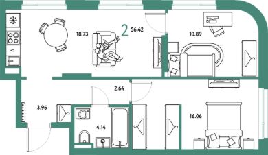 Продаётся 2-комнатная квартира в строящемся доме (Дом 1), срок сдачи: IV-кв. 2027, общей площадью 56.42 кв.м., на 24 этаже. "Страна. Тополёвая" - органично вписанный в городскую среду дом-квартал переменной этажности с акцентной башней доминантой. Мы открываем новую главу истории города, создавая пространство, в котором комфортно жить, работать и строить счастливое будущее.