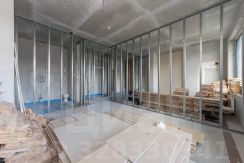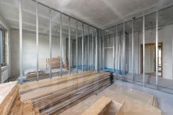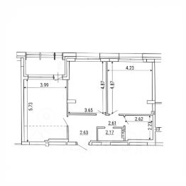 Внутренние перегородки демонтированы, что оставляет свободу для индивидуального зонирования. Базовое пространство позволяет сформировать кухню-гостиную площадью 23 м².