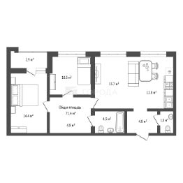 В продаже 3-комнатная квартира 71,4 м2 в кирпичном доме ЖК Онега.