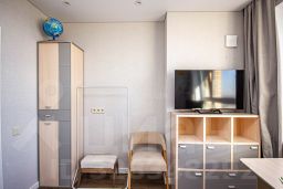 Новому собственнику остается качественный кухонный гарнитур, встроенный шкаф в прихожей, 3 метрвый шкаф в спальне, кондиционер Royal Clima, бойлер Electrolux на 50 литров, мебель в ванной комнате и сан узле.