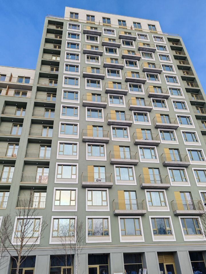 Внутри вас встретит просторный коридор с выходом на балкон, откуда открывается вид на зелёный двор. В подъезде есть пассажирский и грузовой лифты, а также подземная парковка и кладовые. Так же есть возможность купить кладовую.