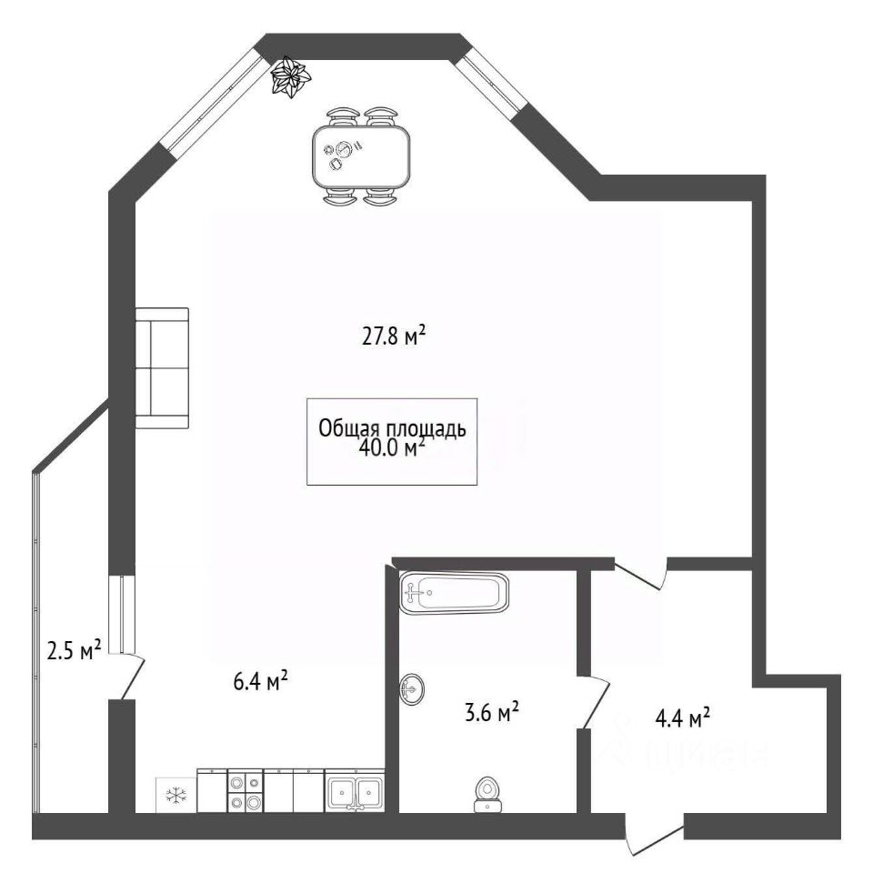 Вы станете первым жителем этой стильной квартиры, что позволит вам создать уникальную атмосферу, отражающую ваш вкус. Интересная планировка площадью 40 м².