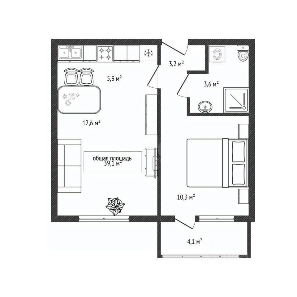 Объект полностью готов к заселению: в стоимость входит почти вся мебель и техника, включая кухонный гарнитур с индукционной плитой и духовым шкафом, двуспальная кровать и шкаф-купе. Планировка рационально использует пространство, создавая комфортные условия для проживания.