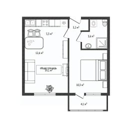 Общая площадь 37 кв. м включает жилую зону 22.9 кв. м, кухню 5.3 кв. м и просторную лоджию 4.1 кв. м. Квартира расположена на втором этаже, окна выходят на улицу.
