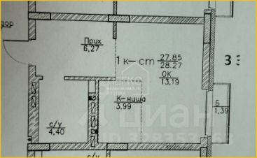 выделенной кухонной зоной и местом под встроенный шкаф-купе.
