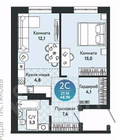 Продается двухкомнатная квартира в новом, современном жилом комплексе "Семейный квартал"!