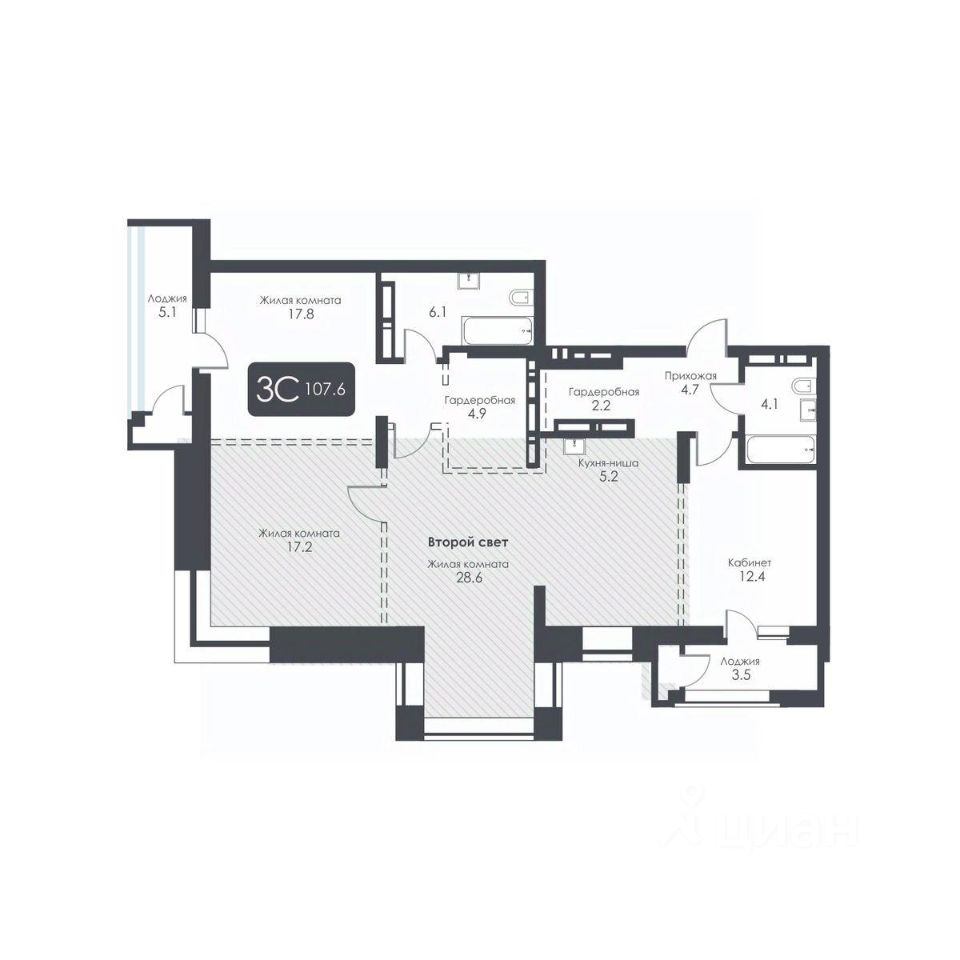 Общая площадь107,6 м²