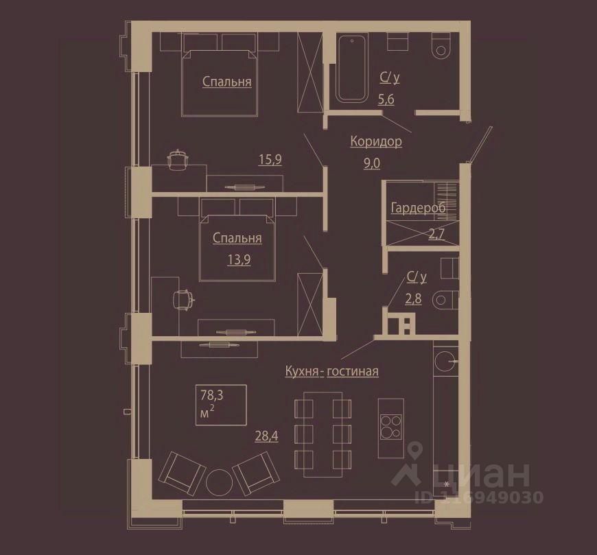 Продается 3х- комн. евро резиденция. Объект расположен в элитном клубном комплексе (Чаплыгина 54). Общая площадь составляет 78,2 кв.м.