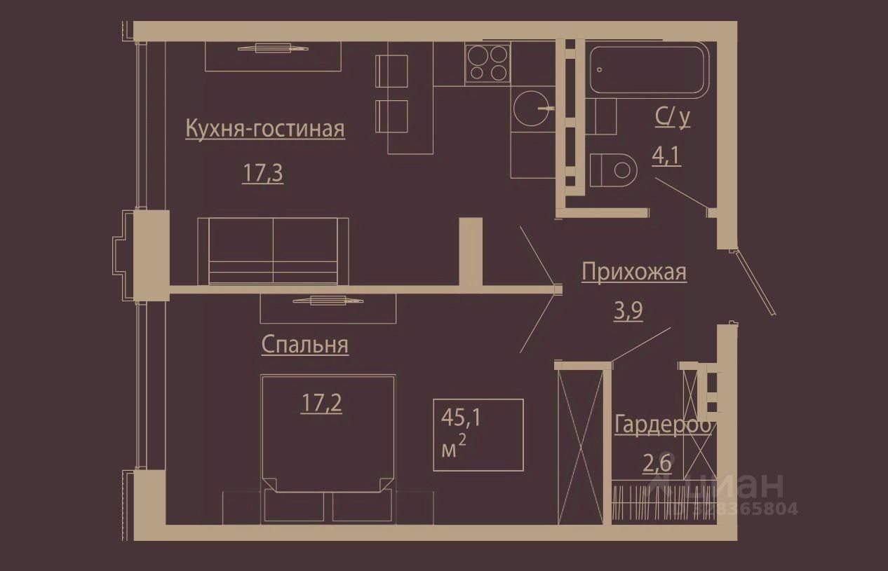 Общая площадь45,2 м²