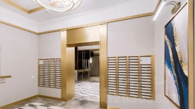 Изысканная отделка интерьеров лобби и холлов жилых этажей выполнена в стиле ар-деко. Лобби украшает дизайнерская мебель, мрамор и натуральное дерево. Общественные зоны украсили зеркала, светильники, молдинги и акцентные элементы из латуни. Настенные панели и входные двери выполнены из шпонированной древесины ценных тропических пород.