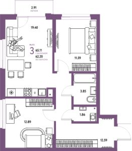 Продаётся 3-комнатная квартира в строящемся доме (Дом 1), срок сдачи: IV-кв. 2026, общей площадью 65.11 кв.м., на 5 этаже. Квартал "Страна.Береговая" - новый проект компании "Страна Девелопмент", расположенный в Заельцовском районе Новосибирска по адресу: ул. 2-я Сухарная, 109/2.