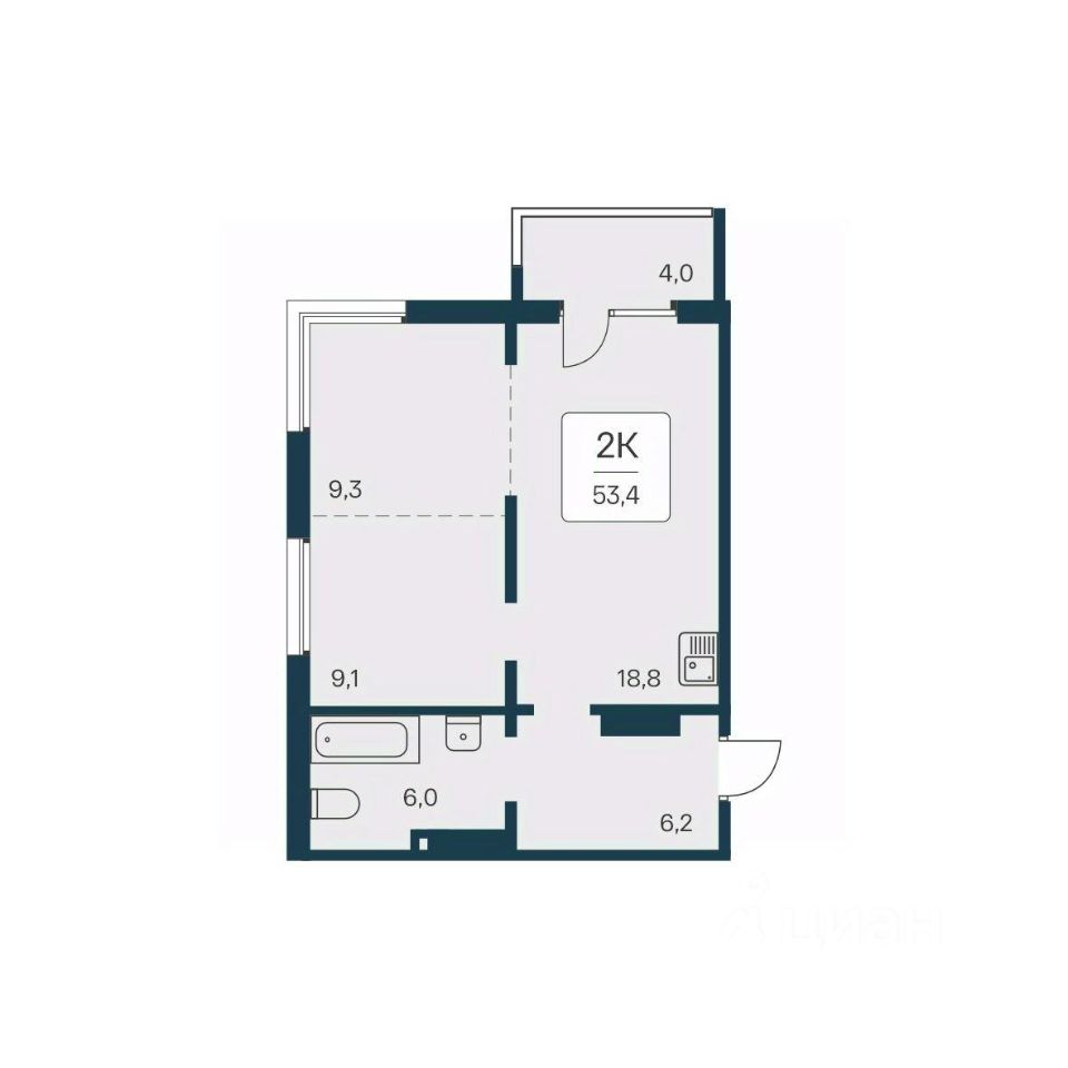 Общая площадь53,4 м²