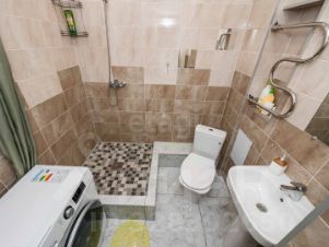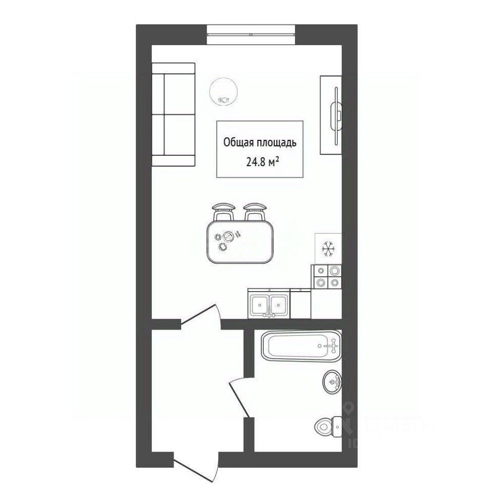 Окна выходят во двор на солнечную сторону — тихо и много естественного света. Санузел совмещён.