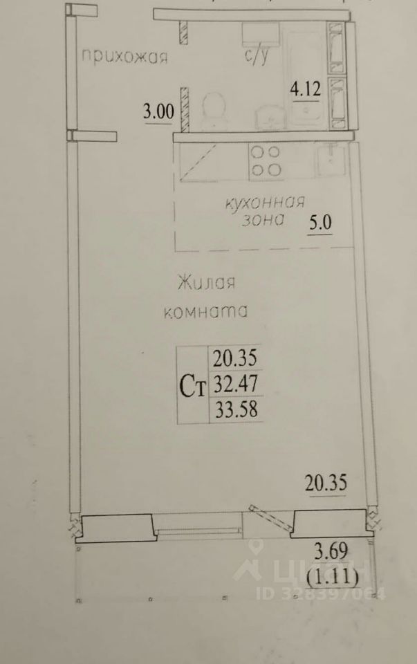 33,58 м²