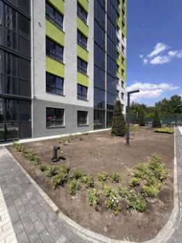 Концепция благоустройства и озеленения разработана профессиональным дизайн-бюро. Вдоль всего квартала, между жилых домов, будет проходить центральный бульвар, в котором будут благоустроены дворы-парки, лаунж-пространства, спортивные площадки, сухой фонтан, беседки-качели, игровые площадки для разных возрастов и большой детский плейхаб с гранд-МАФом Динозавр.