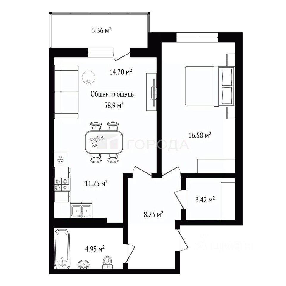 В квартире предусмотрены изолированные комнаты с общей площадью 58,9 м² и кухней 11,25 м². Высота потолков составляет комфортные 2,7 м, что придаёт пространству дополнительную лёгкость и простор. Совмещенный санузел оснащён современным оборудованием, а тёплый пол создаёт уют и комфорт в любое время года.