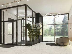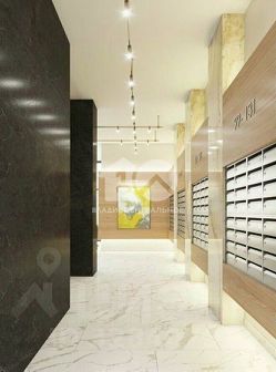 Дизайнерское оформление подъёма и благоустроенная придомовая территория с ландшафтным дизайном.