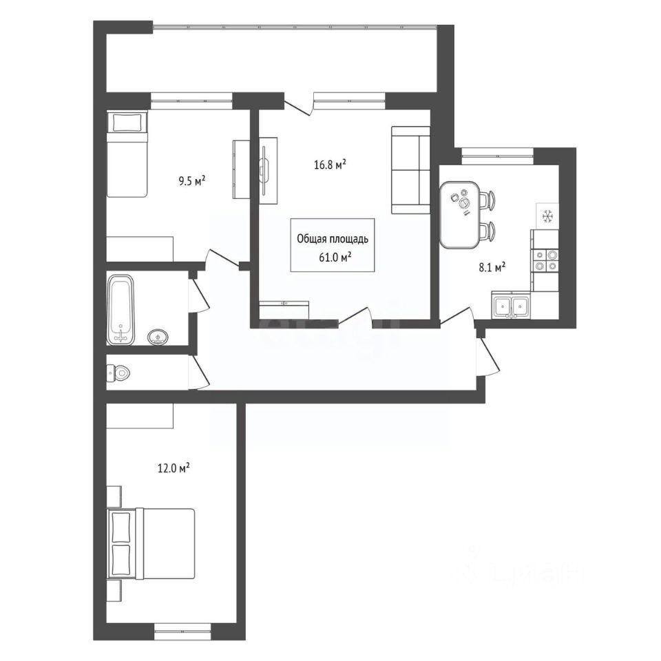 К продаже предлагается квартира общей площадью 61 кв.м. в кирпичном доме (1988 г.) с уникальной планировкой и отличной локацией.