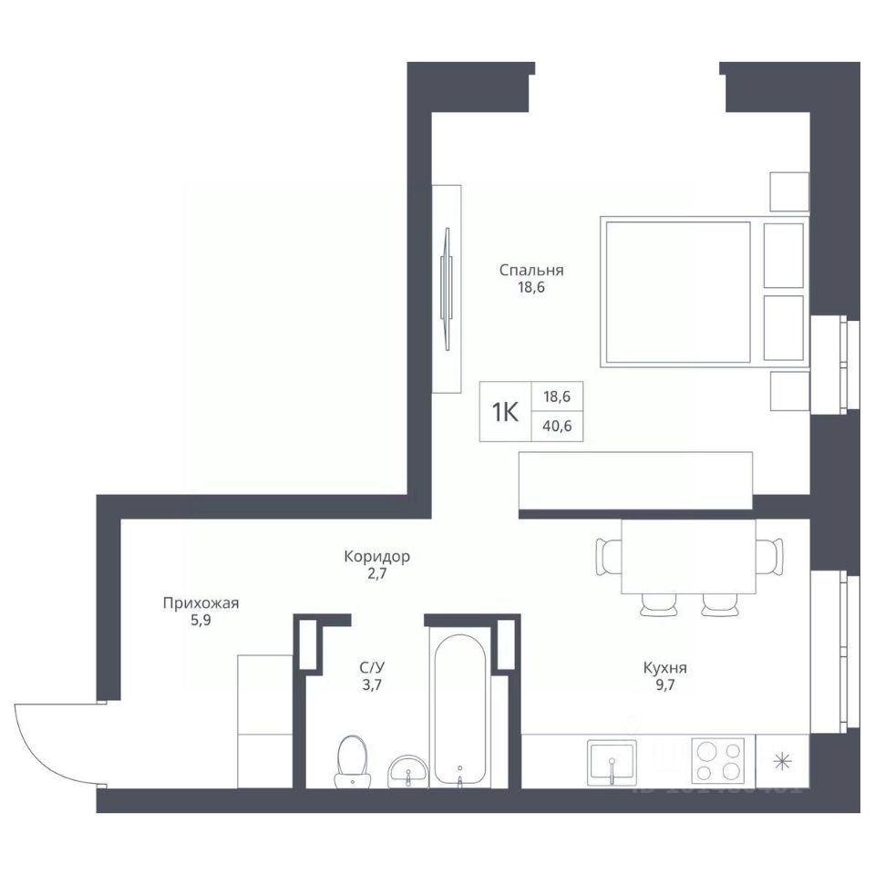 Общая площадь40,6 м²