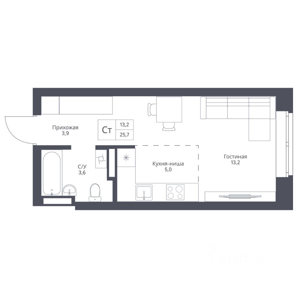 Общая площадь25,7 м²