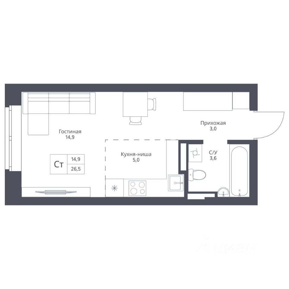 Продается 1-комн. студия с предчистовой отделкой. Квартира расположена на 16 этаже 17 этажного монолитно-кирпичного дома в Экограде "12 дворов" от группы компаний "ПОЛЯКОВ".