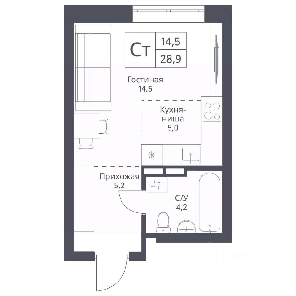 Общая площадь28,9 м²