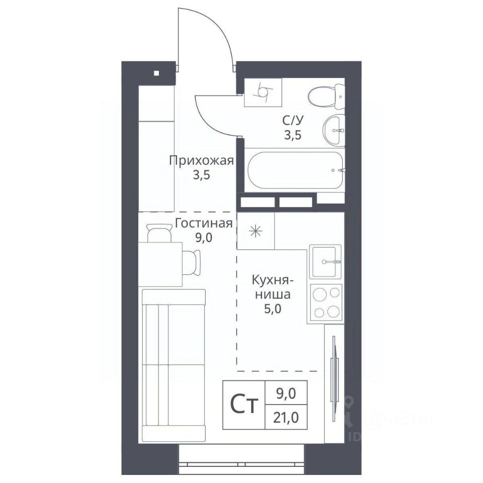 Общая площадь21 м²