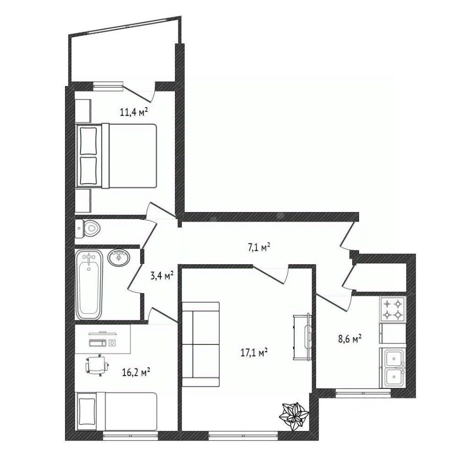 Удобная планировка с изолированными комнатами, окна выходят на две стороны. Квартира под ремонт.