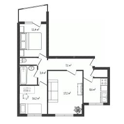 Продается трекхкомнатная квартира в Ленинском районе. Площадь 62,7 кв. м. без учета лоджии.
