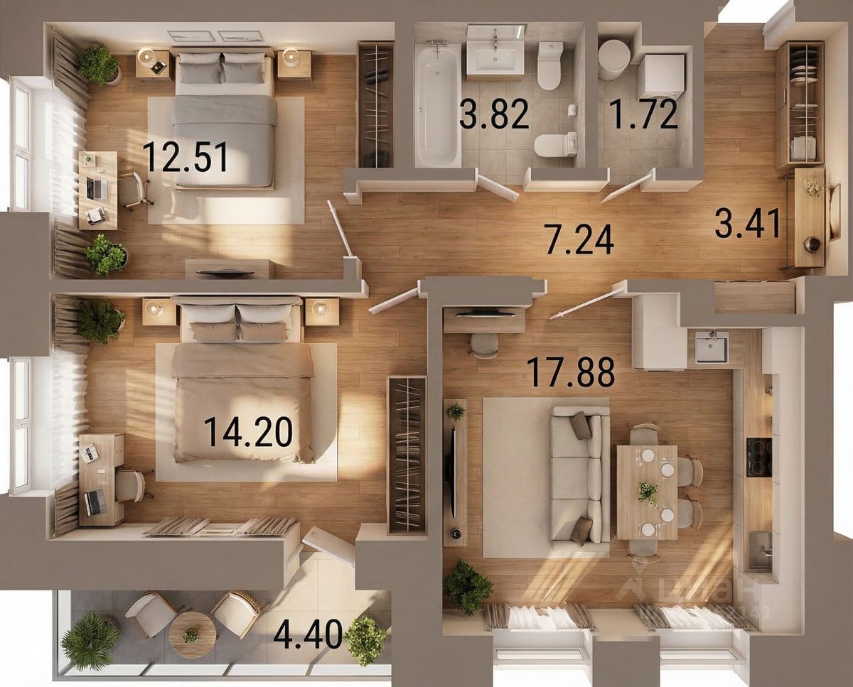 Внутреннее пространство дополняет панорамная лоджия, где вы сможете наслаждаться свежим воздухом и красивыми пейзажами.
