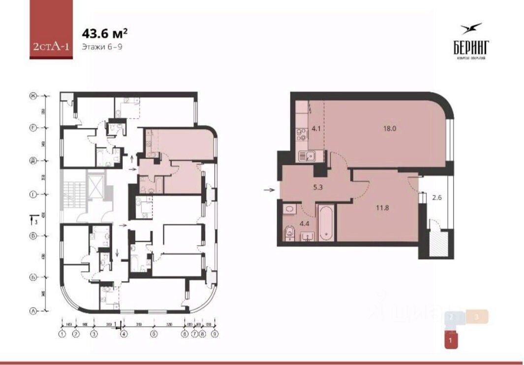 В продаже ВИДОВАЯ квартира двухкомнатная студия в новом ЖК "Беринге"