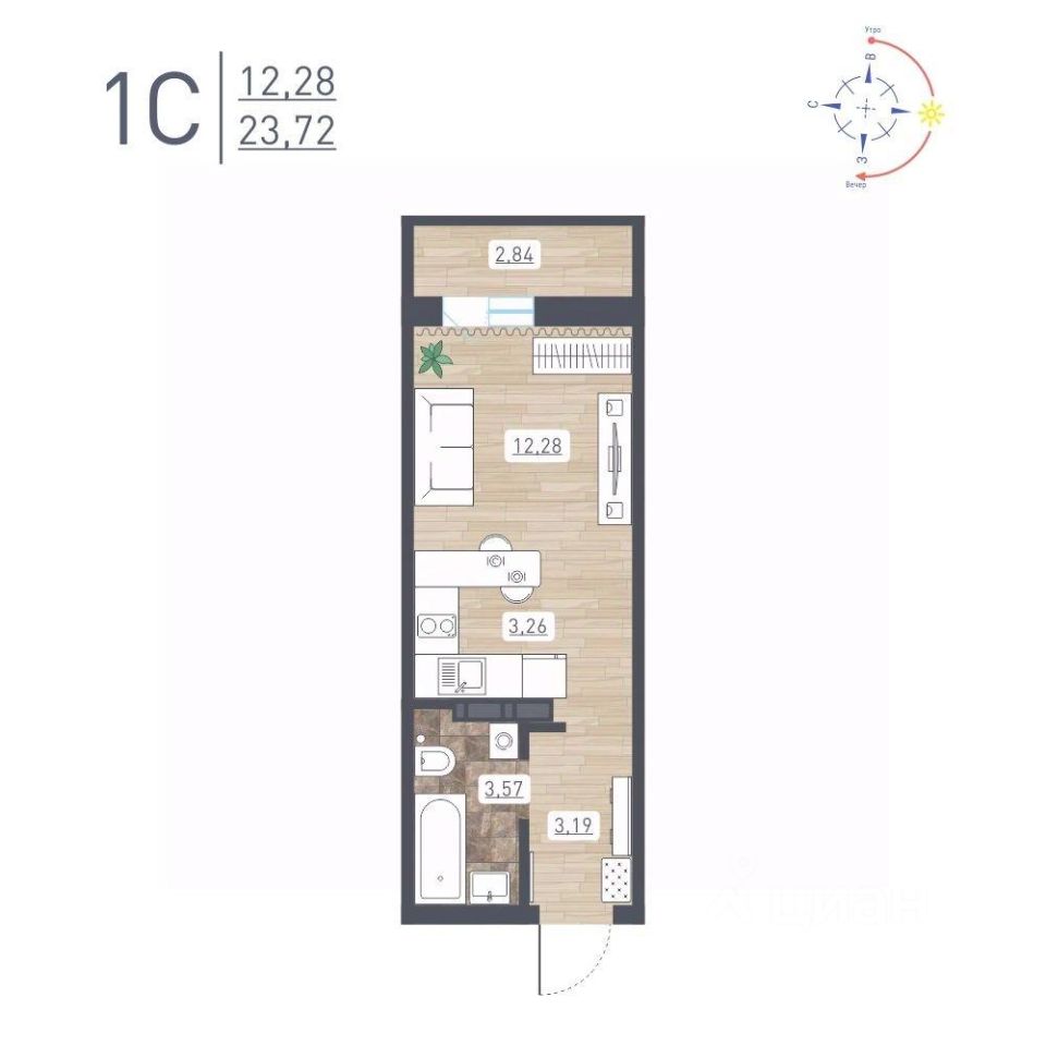 Продаётся студия в сданном доме (Забалуева, 69/2 (Дом 11)), срок сдачи: IV-кв. 2025, общей площадью 23.72 кв.м., на 11 этаже. Расположение, транспортная доступность