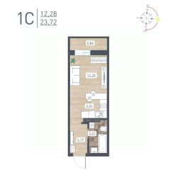 Продаётся студия в сданном доме (Забалуева, 69/2 (Дом 11)), срок сдачи: IV-кв. 2025, общей площадью 23.72 кв.м., на 13 этаже. Расположение, транспортная доступность