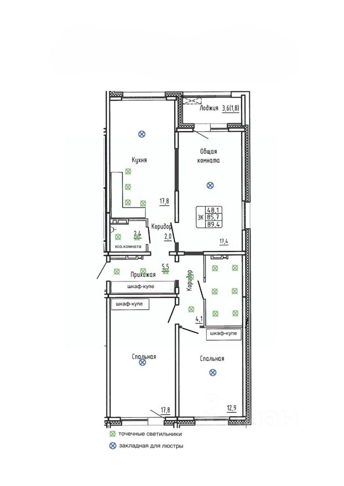 Общая площадь89,4 м²