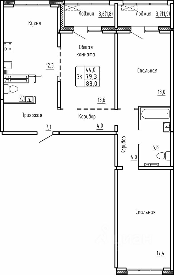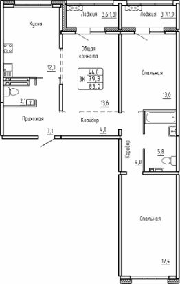 Общая площадь83 м²
