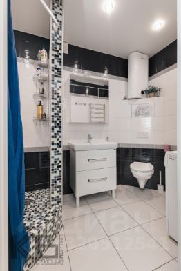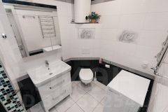 На заказ сделана душевая кабина, вся сантехника импортная, матовые натяжные потолки, встроенные шкафы-купе по индивидуальным проектам в прихожей, комнате, на лоджии.