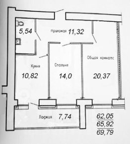 2 комнатная квартира на 7 этаже с большой (на кухню и комнату) лоджией .