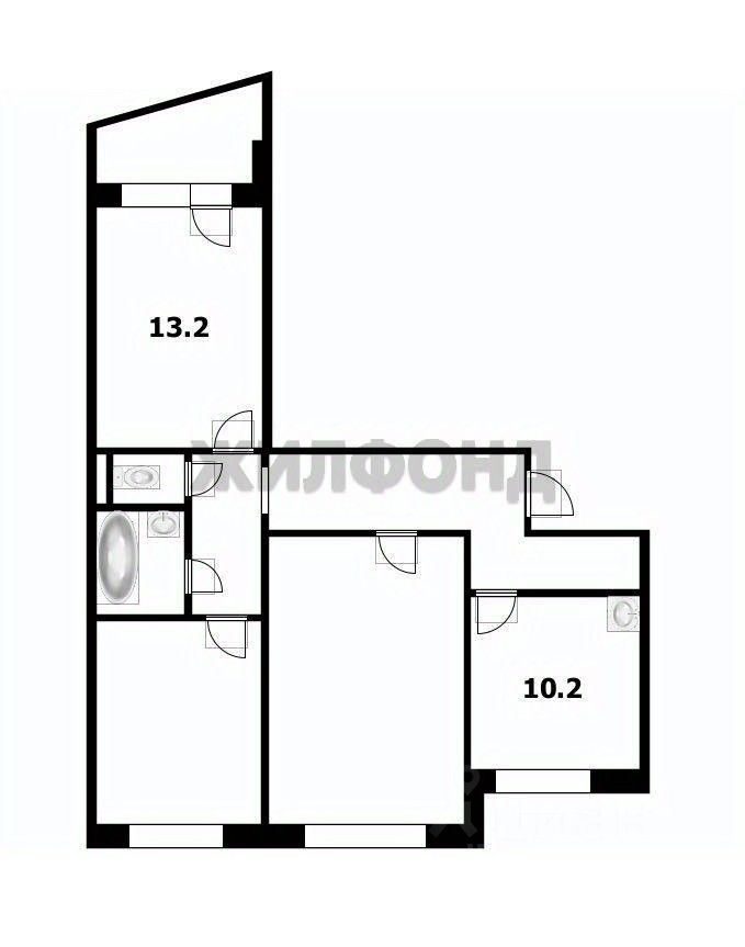 2. комната 13,2 кв.м, кухня общая 10,2 кв.м, общая площадь квартиры 65 кв.м