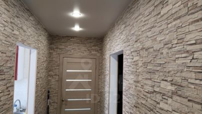 В 2-х жилых комнатах стены оштукатурены и покрашены в светло-бежевый теплый цвет. Потолки во всей квартире - натяжные. Окна пластиковые 2-х камерные, установлены сетки москитные. Пол ламинат. На кухне моющиеся обои с золотисто-желтый орнаментом цветы, в коридоре и прихожей, а также в маленькой комнате также обои.